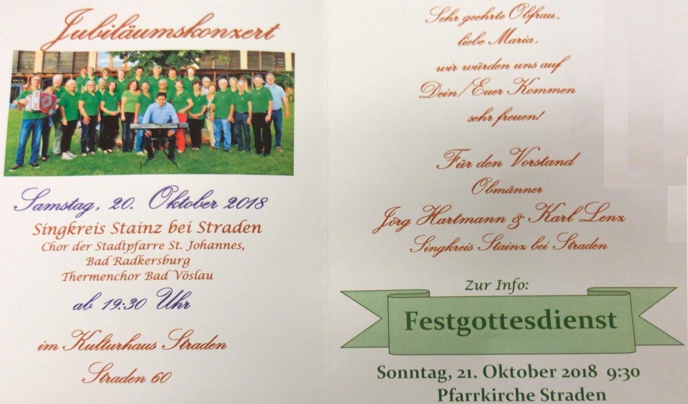 Besuch bei unseren Freunden, dem Singkreis Stainz bei Straden, anläßlich ihres 20jährigen Bestehens.